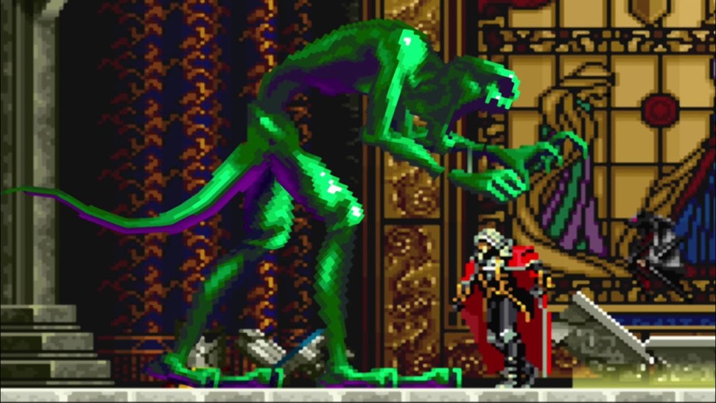 Estos son sólo algunos de los seres de pesadilla que había que exterminar para poder seguir progresando en el juego, muchos de ellos tomados del folclor popular, de Hollywood o de entregas anteriores de la misma saga. Los escenarios, que van desde catedrales góticas, hasta coliseos romanos, no dejaban de sumergirme completamente en la atmosfera del castillo. Alucard – hijo de Drácula, protagonista del juego -podía transformarse en un poderoso lobo o en niebla para acceder a lugares inexplorados del castillo, así como lanzar hechizos, y los diálogos de éste y los otros personajes siguen grabados en la memoria de todos los que lo jugamos